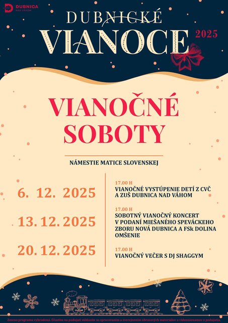 Do programu DUBNICKÝCH VIANOC sme tento rok opäť zaradili aj VIANOČNÉ SOBOTY.
