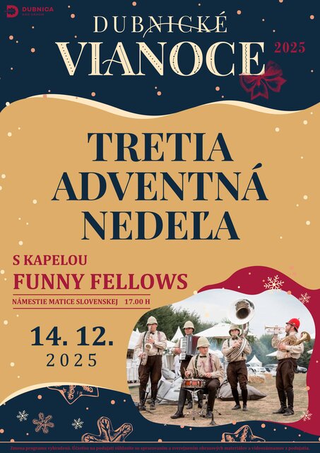 O dobrú náladu sa postará kapela Funny Fellows, ktorá svojím vystúpením prinesie na námestie jedinečný hudobný zážitok plný elegancie a radosti.