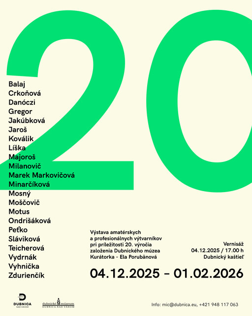 Vernisáž sa uskutoční vo štvrtok 4. decembra 2025 o 17.00 hod. v priestoroch Dubnického kaštieľa.